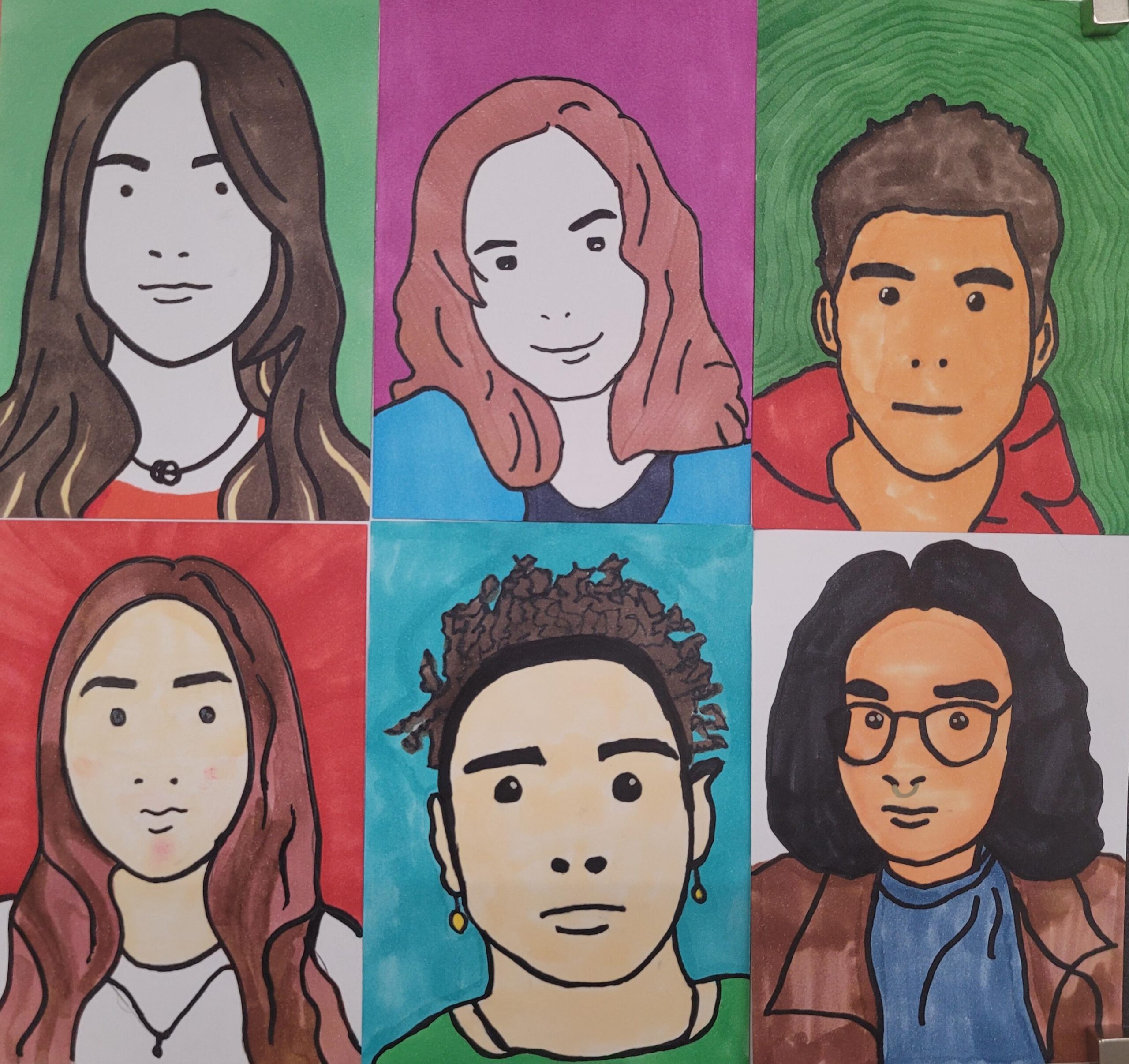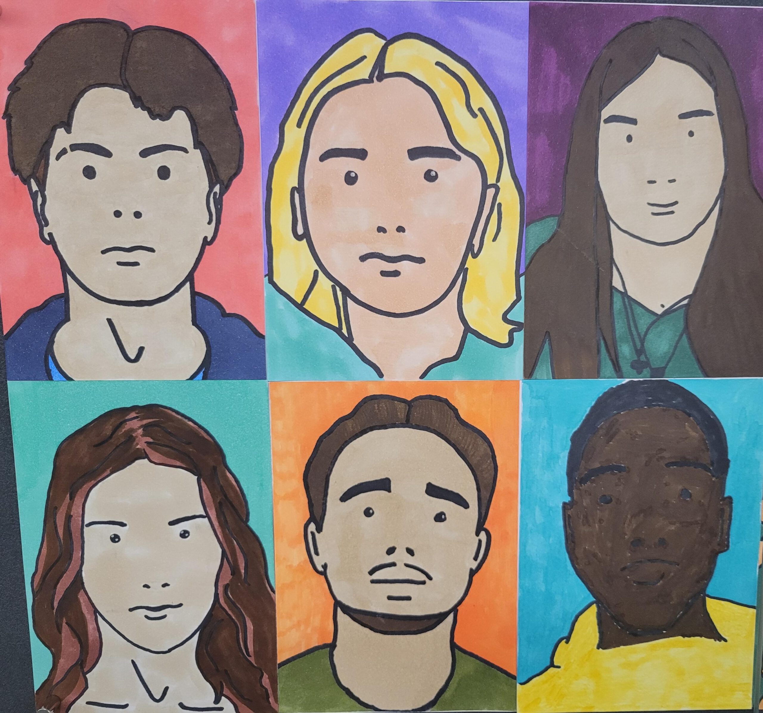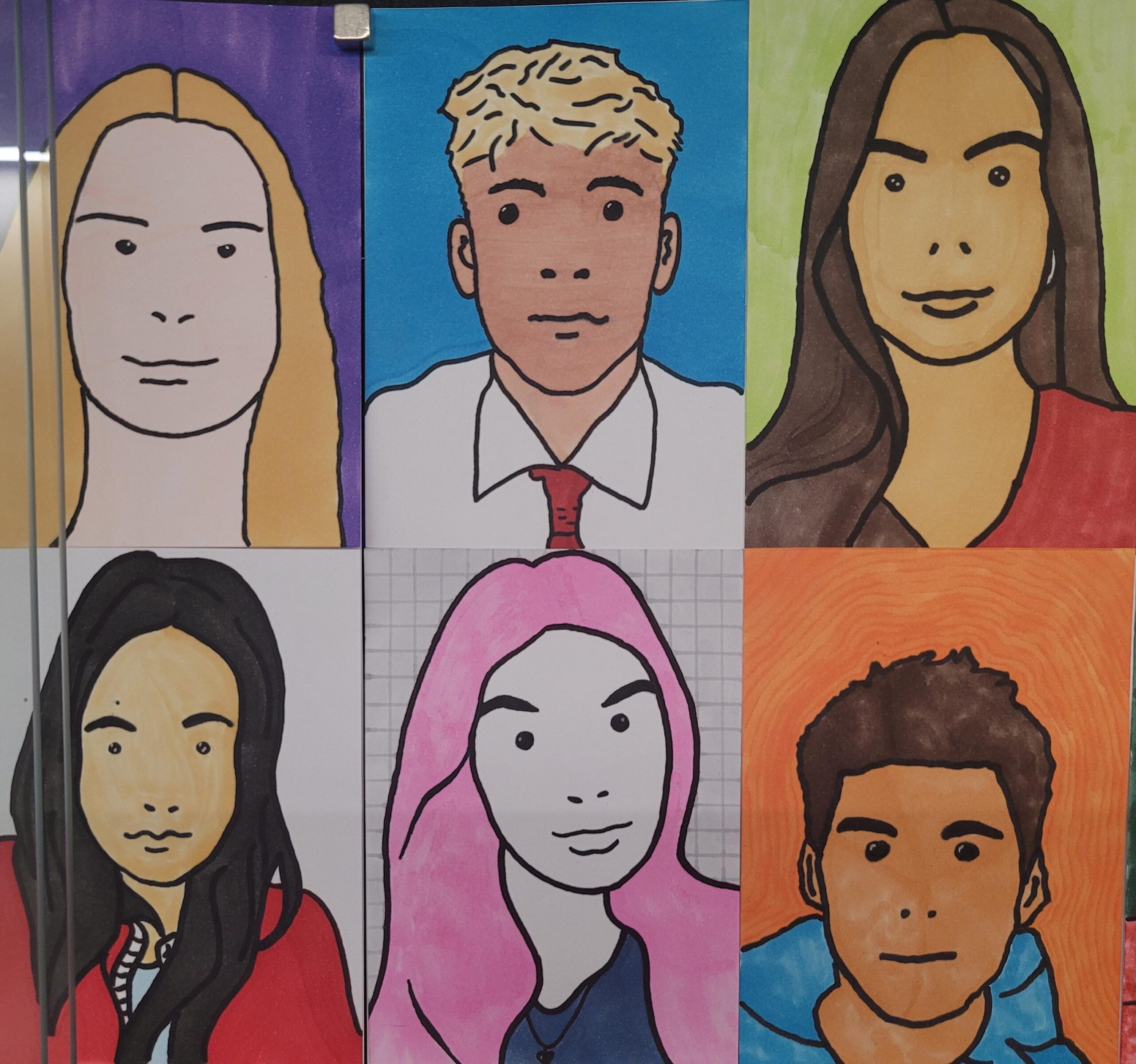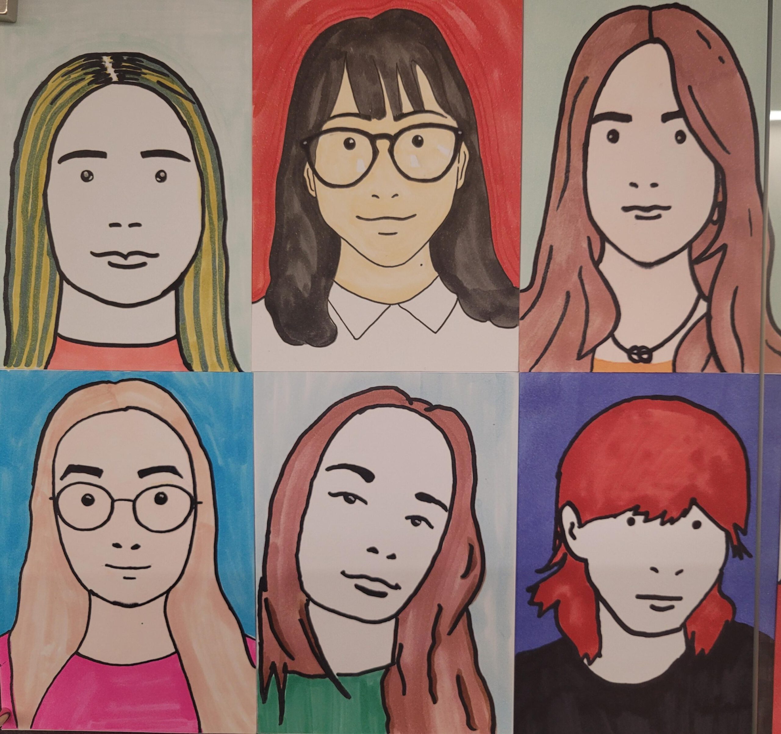 „Selbstporträt“, angelehnt an Julian Opie, Farbstifte auf Papier