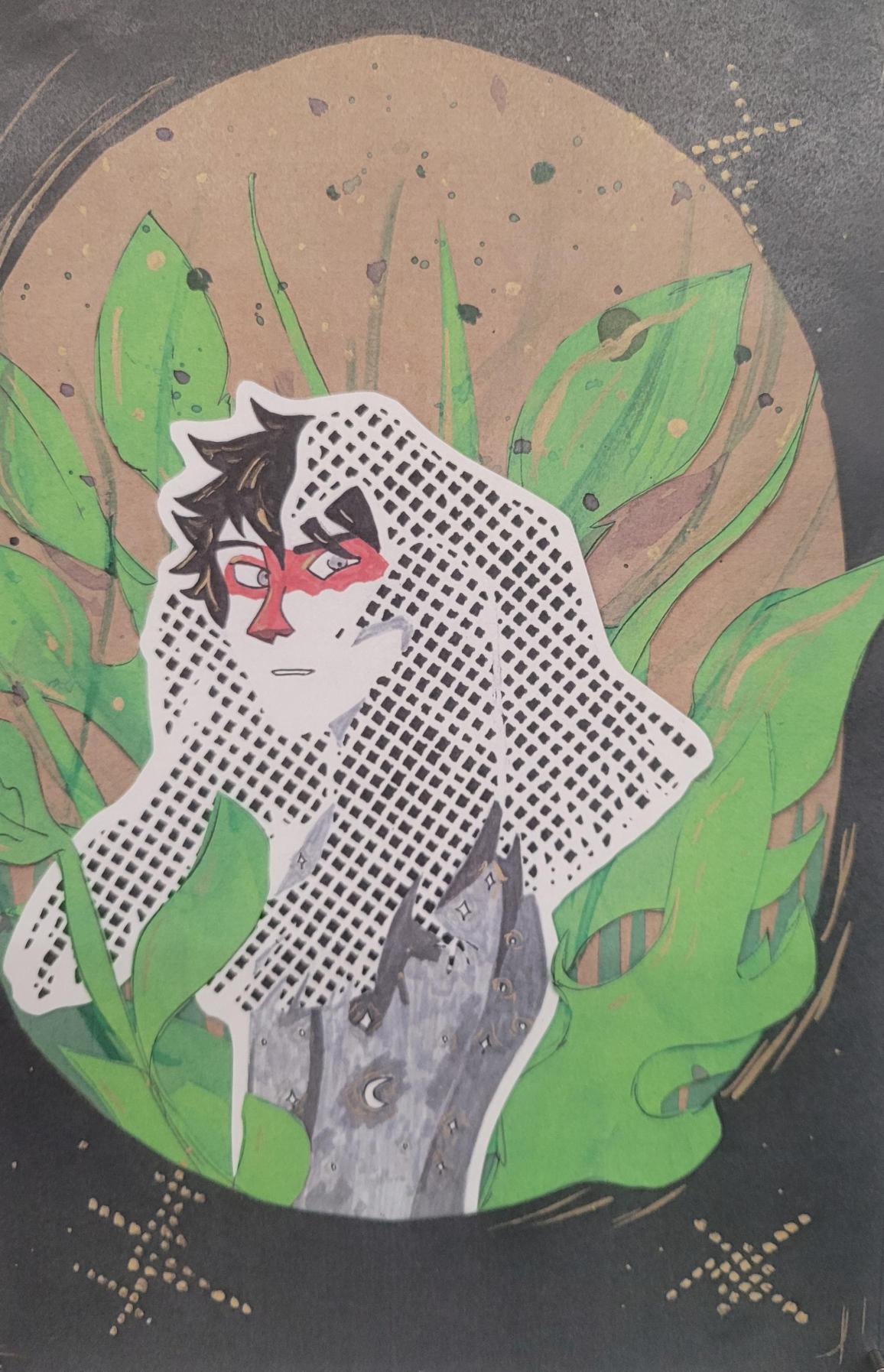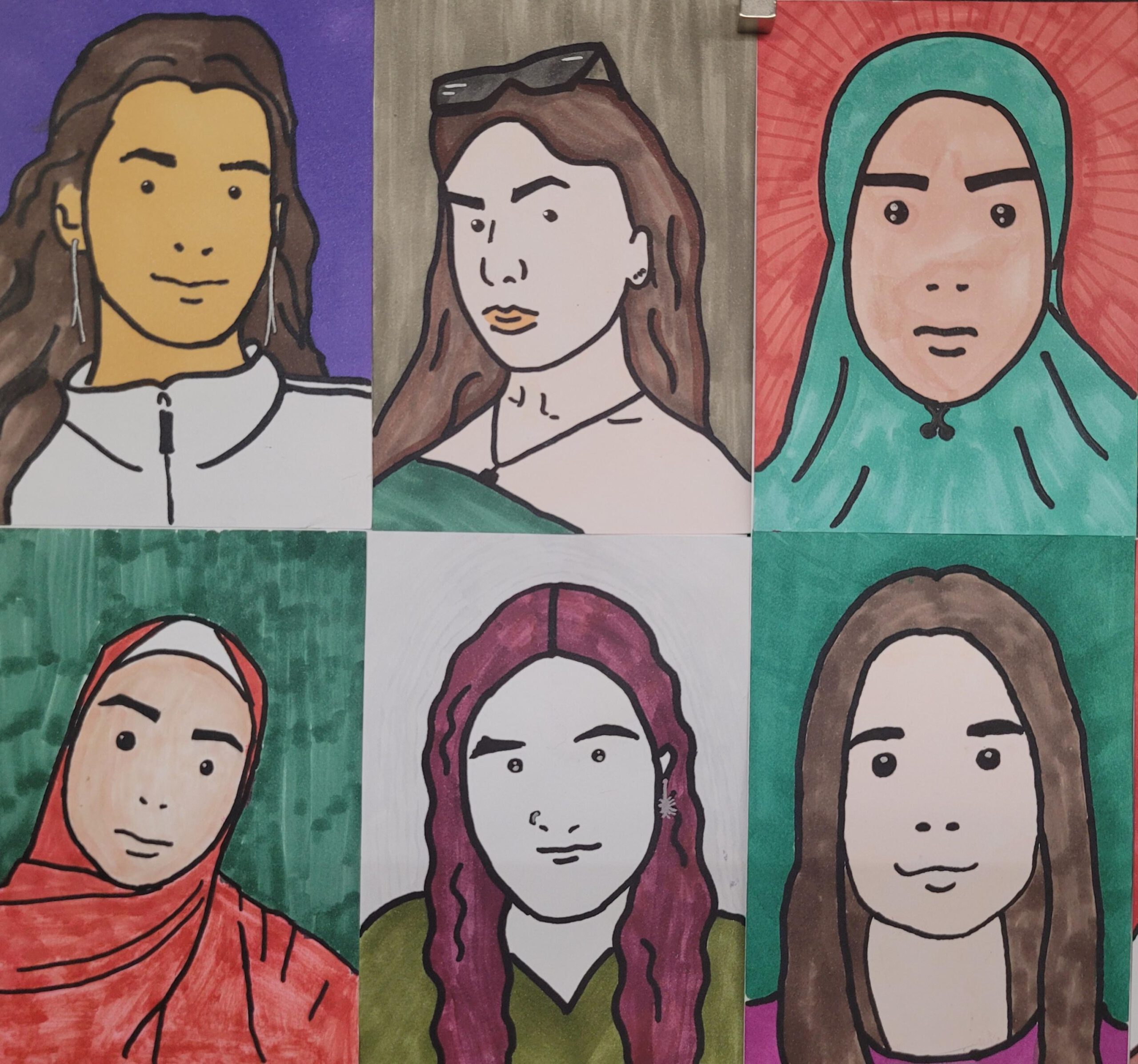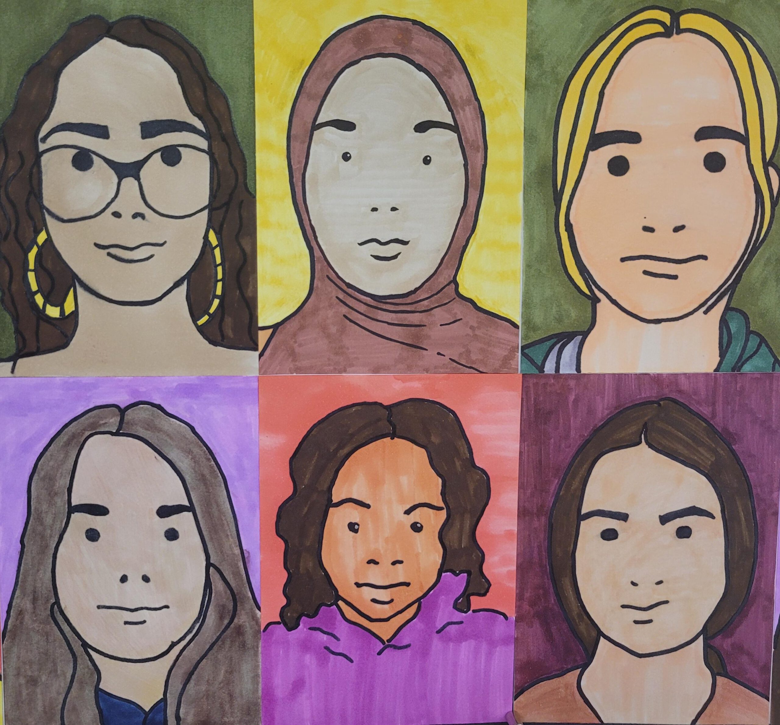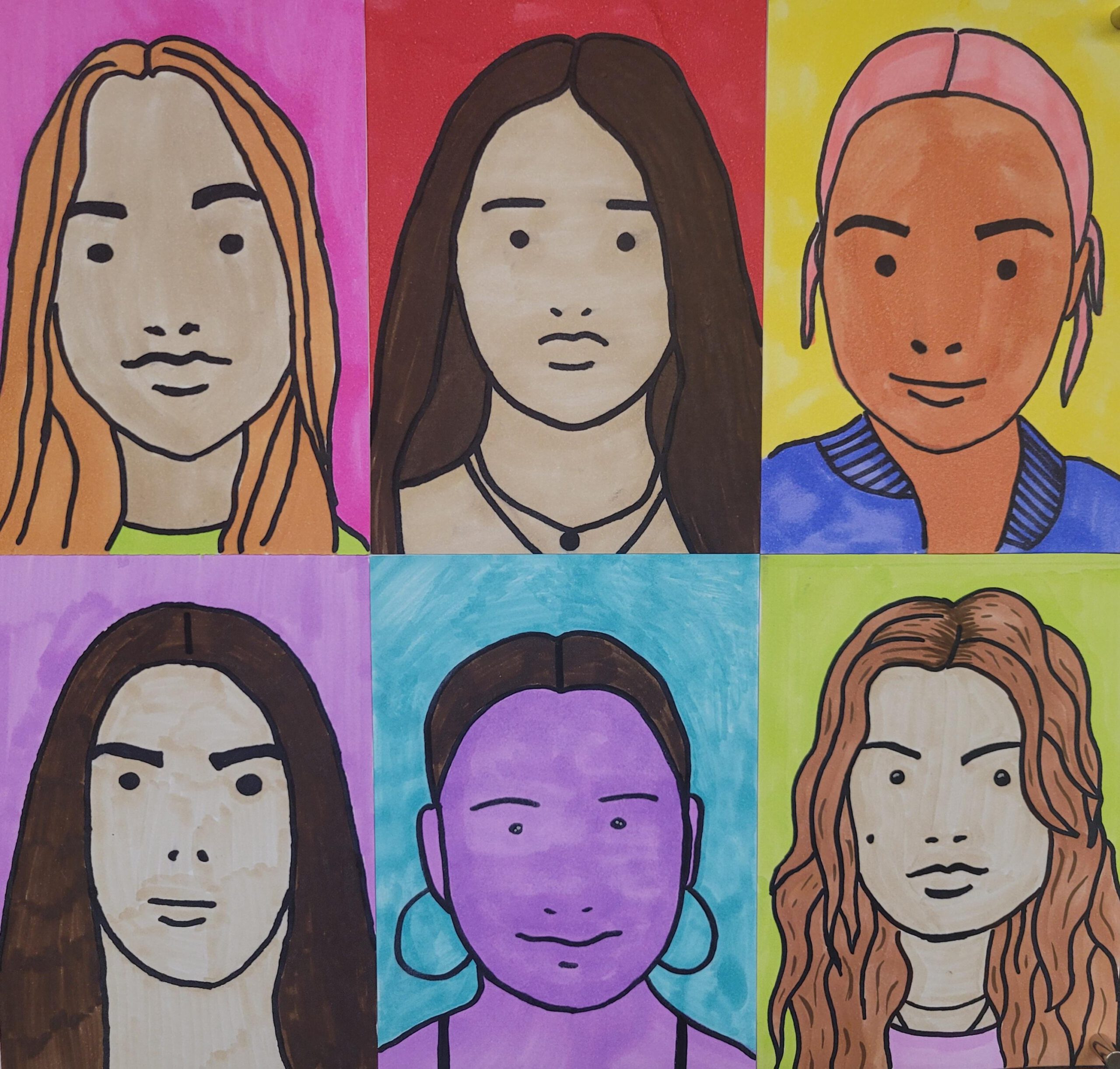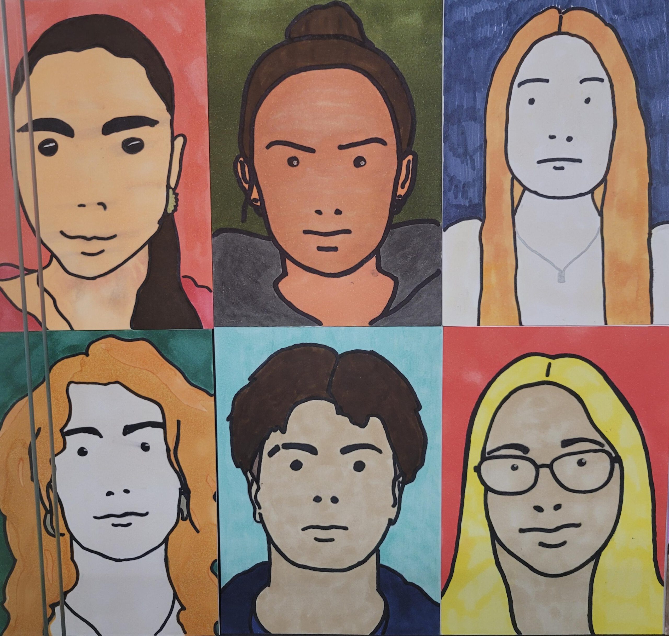 „Selbstporträt“, angelehnt an Julian Opie, Farbstifte auf Papier