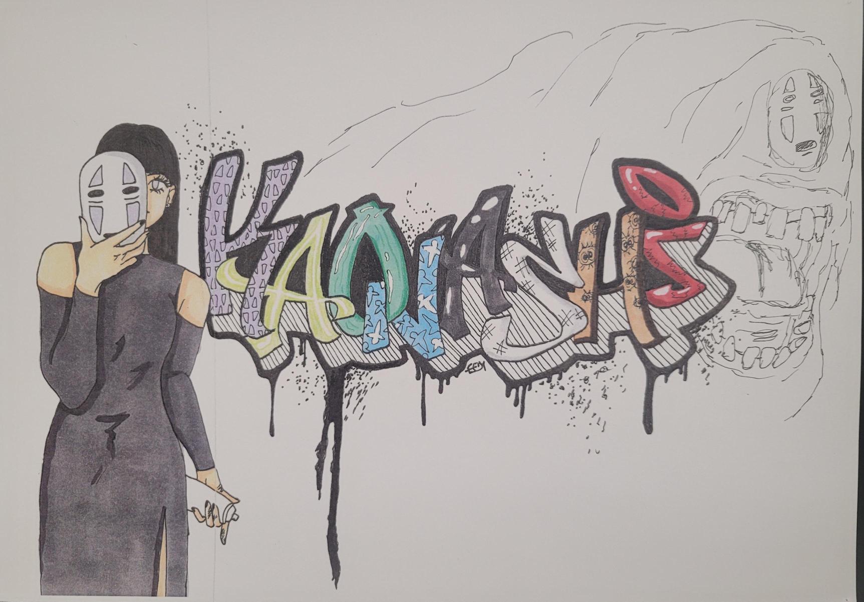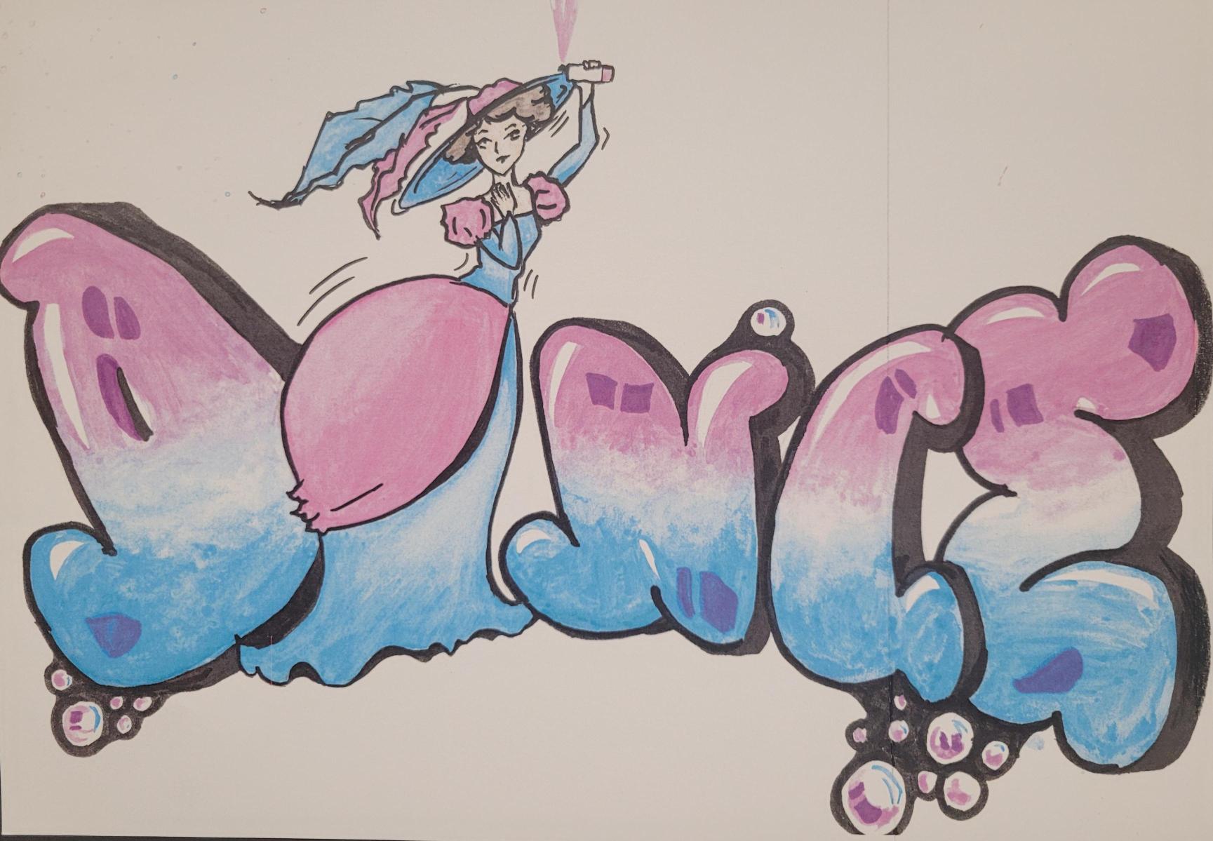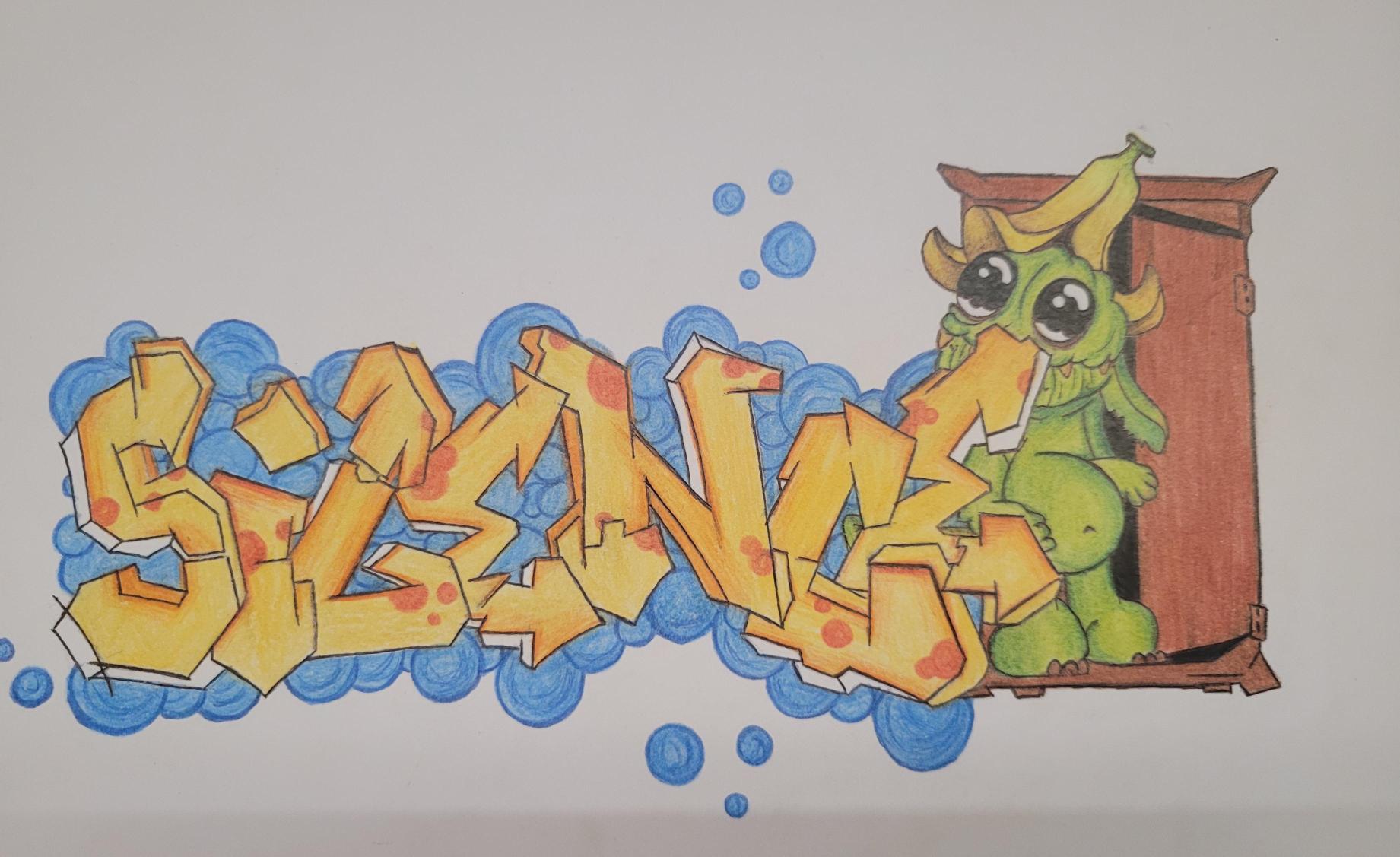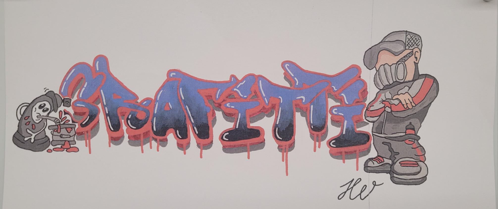 „Schriftzug im Graffitistyle“, Farbstifte auf Papier
