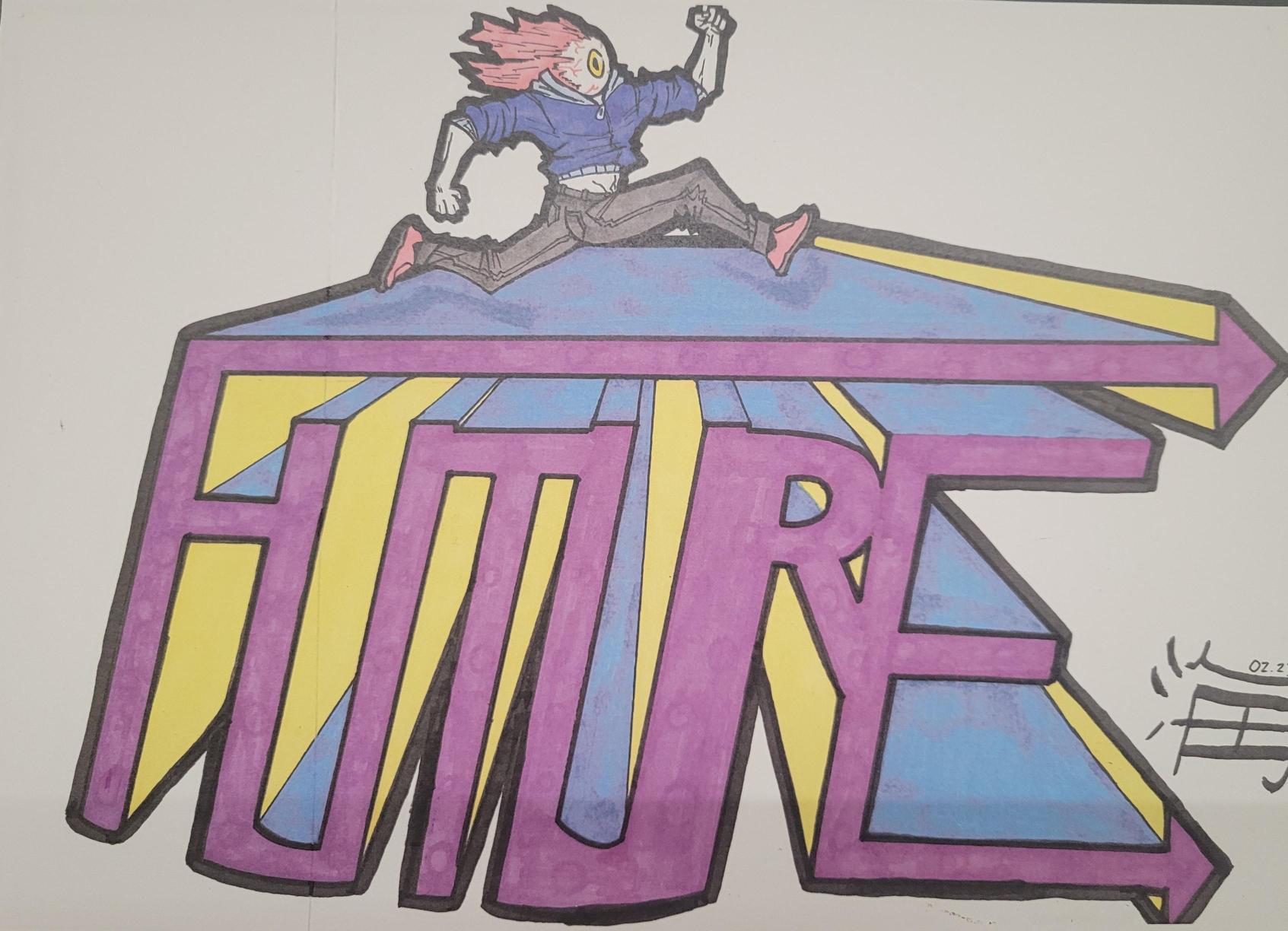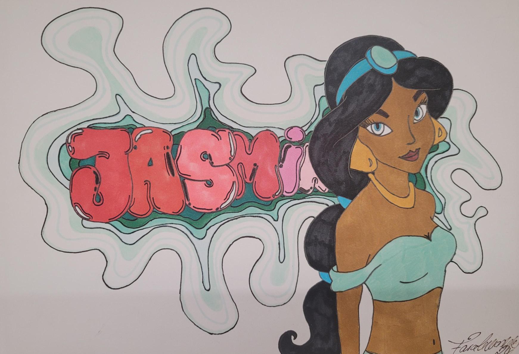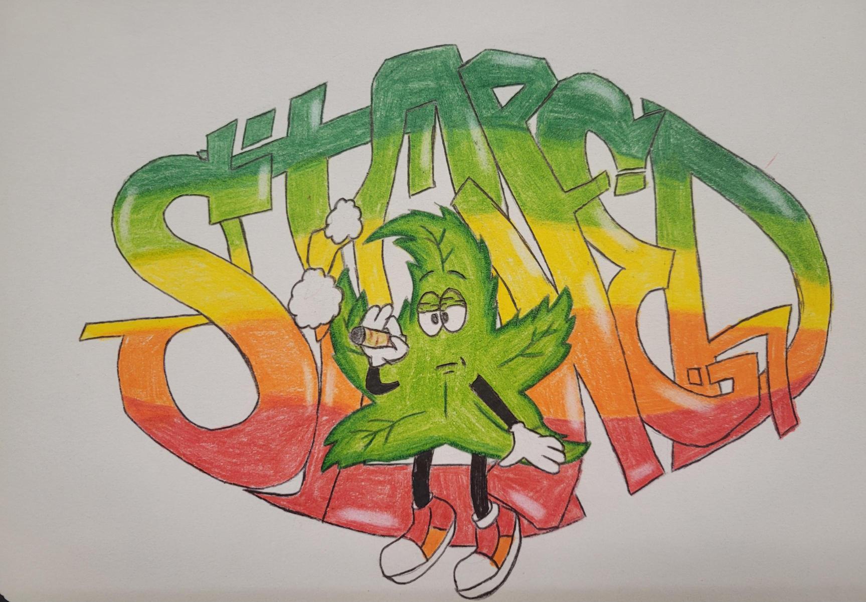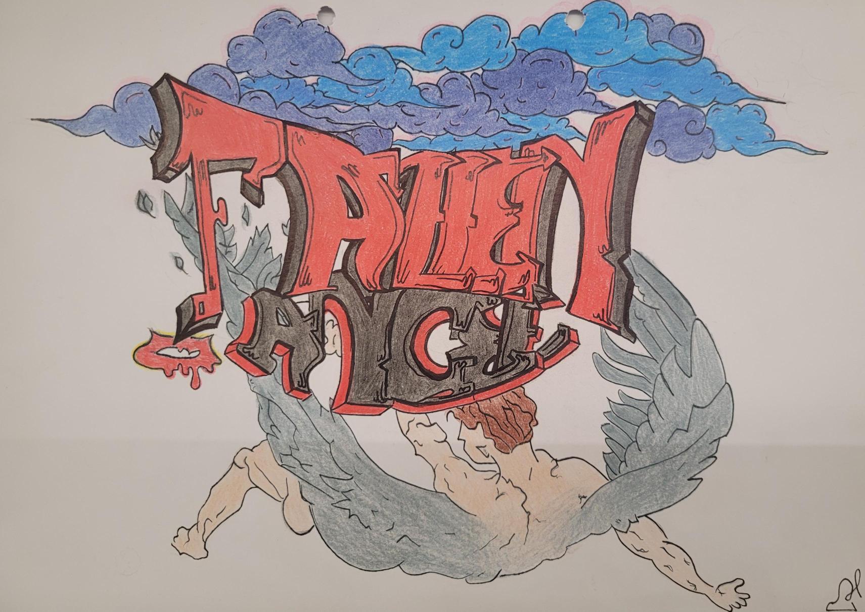 „Schriftzug im Graffitistyle“, Farbstifte auf Papier