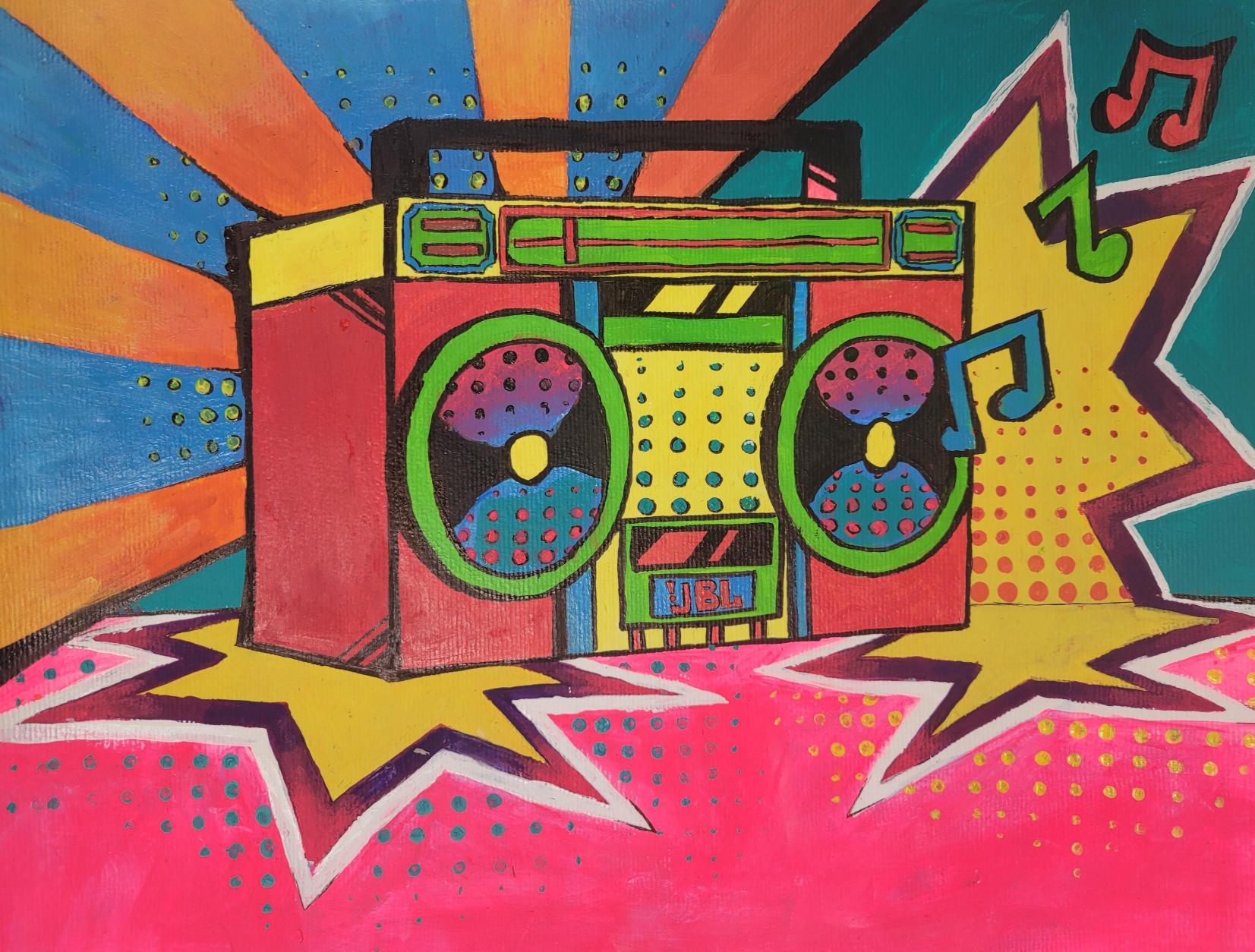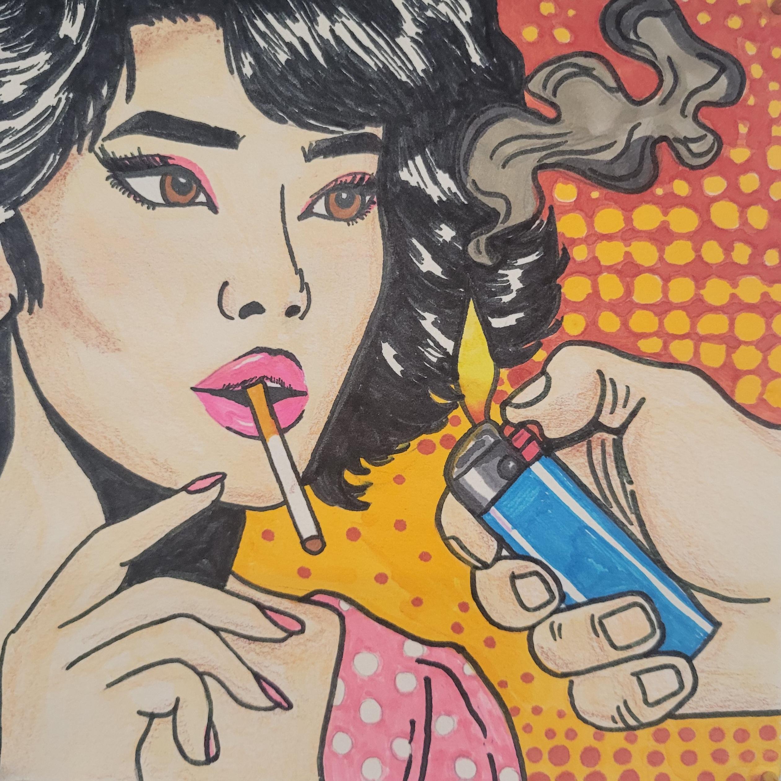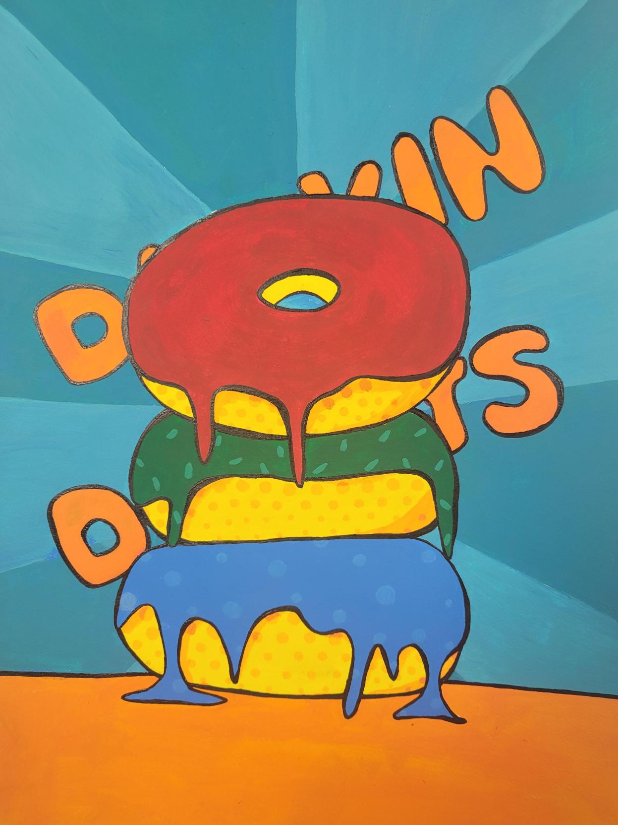Kaufrausch“-Pop Art, Acryl auf Malpappe