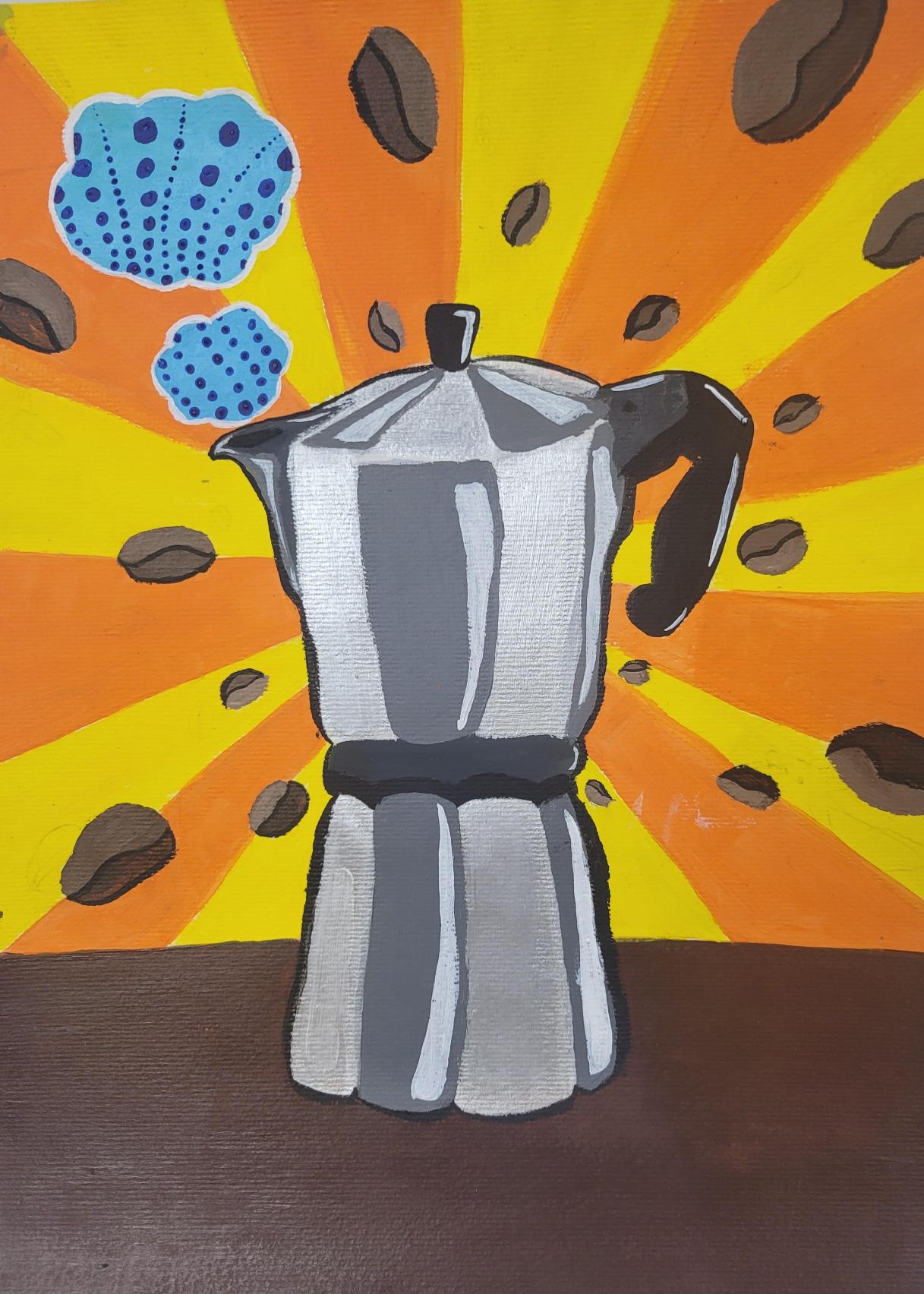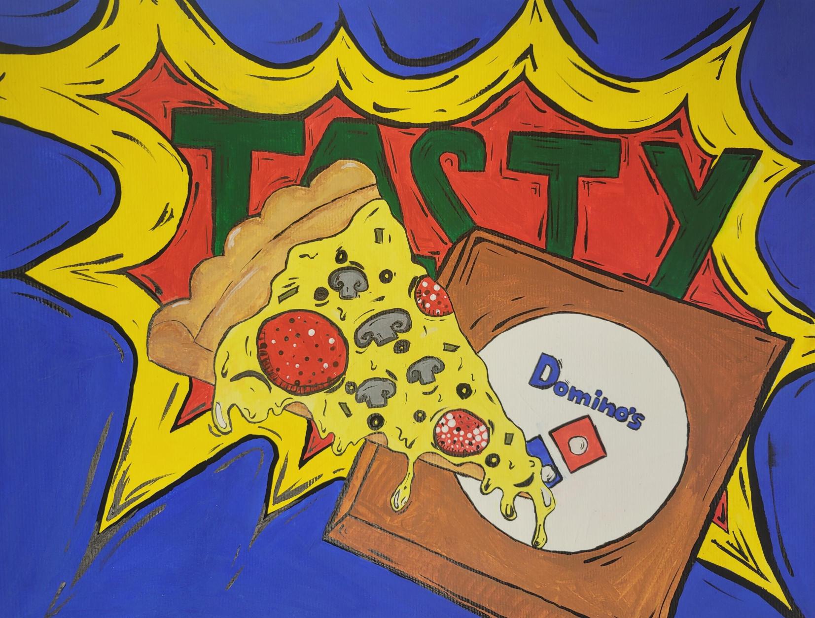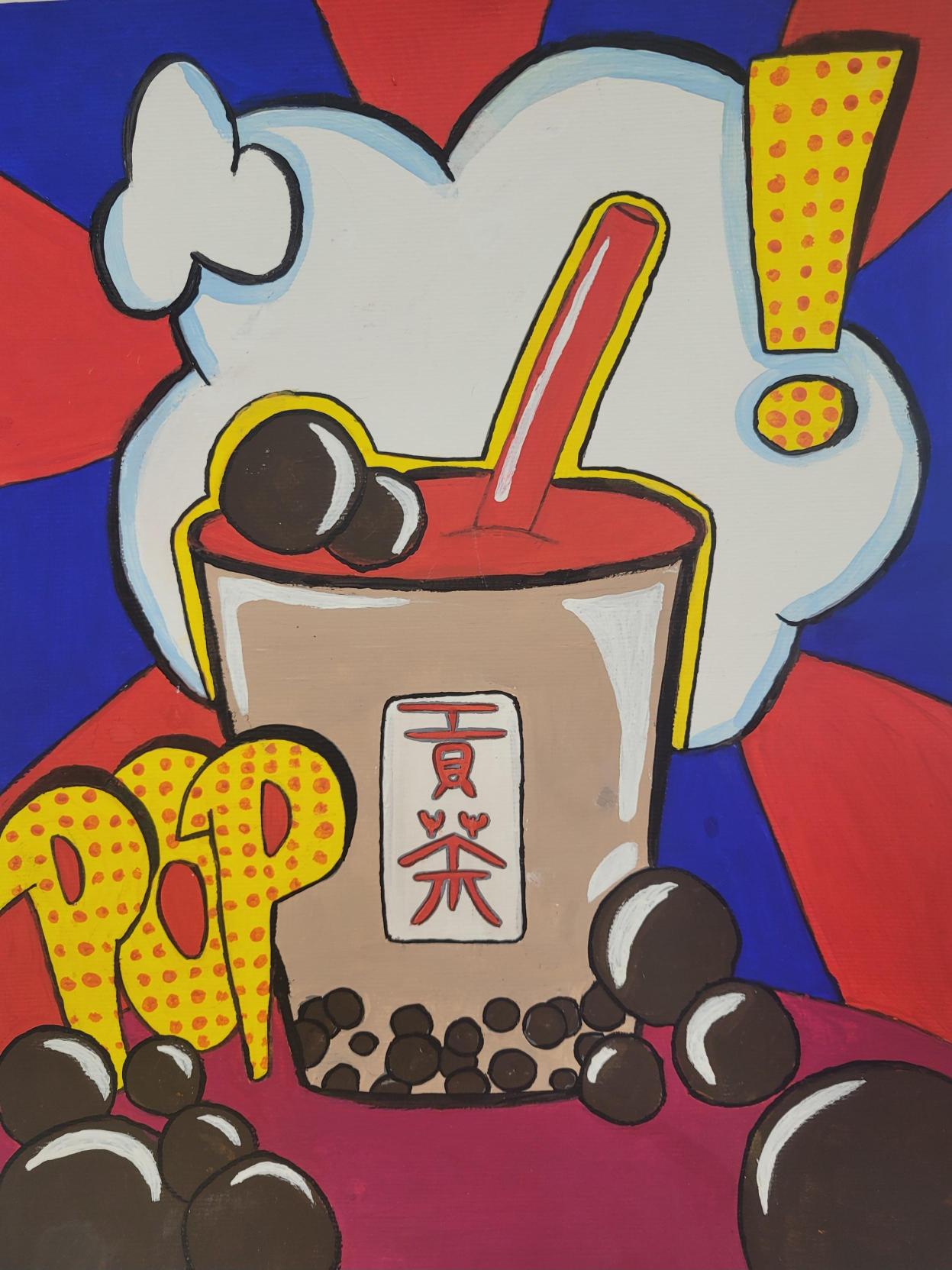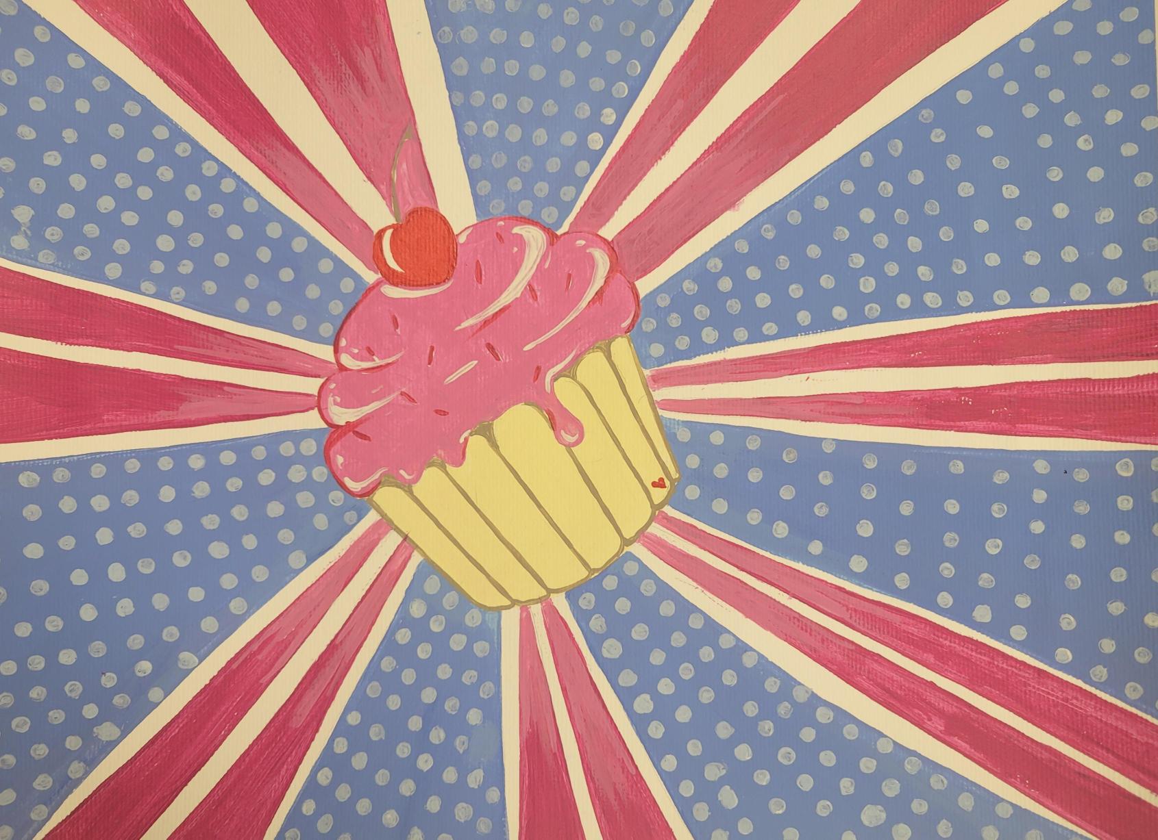 Kaufrausch“-Pop Art, Acryl auf Malpappe