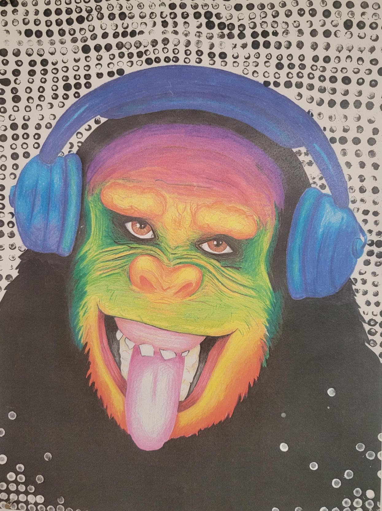 „Porträt“ – Pop Art, Farbstifte auf Papier